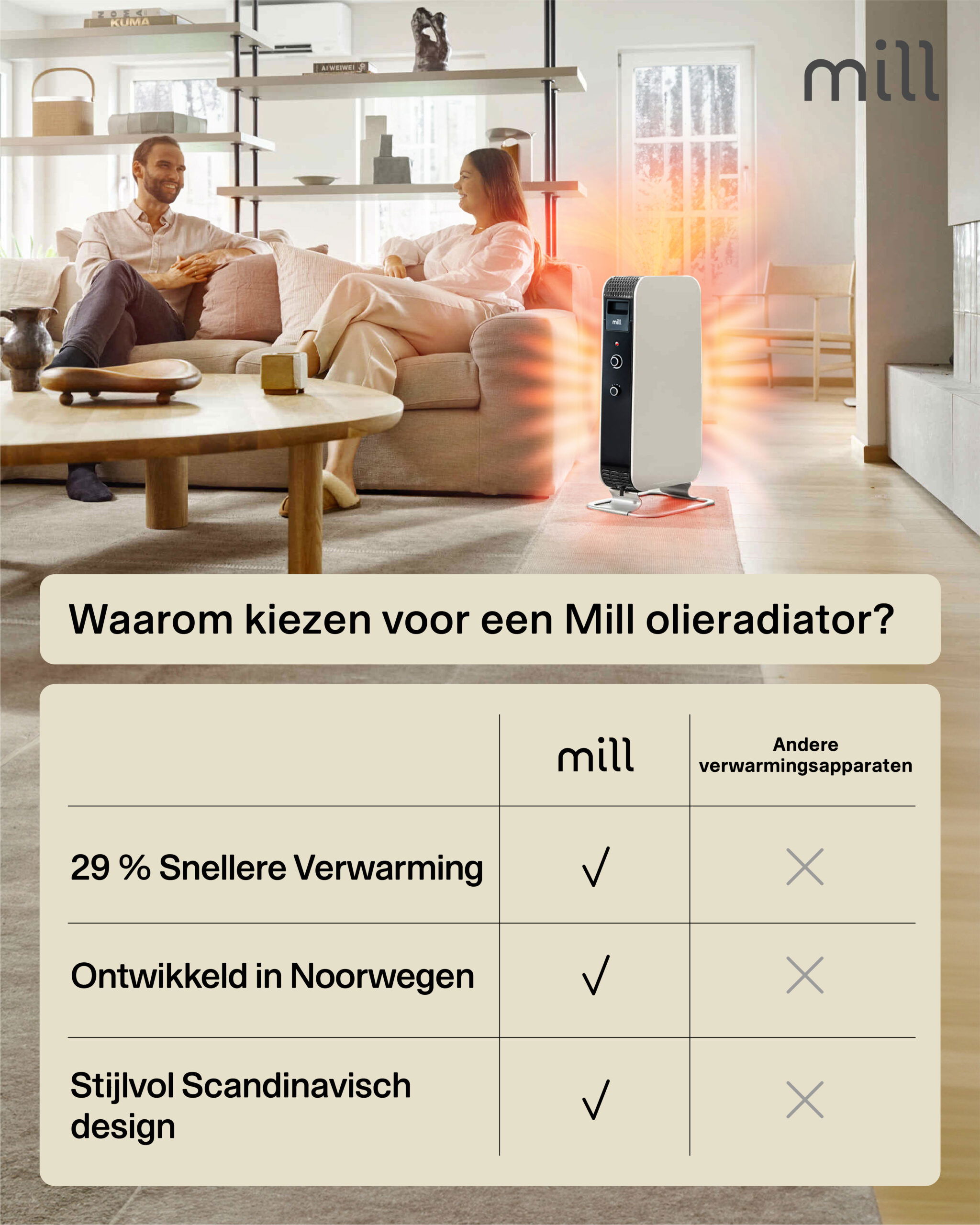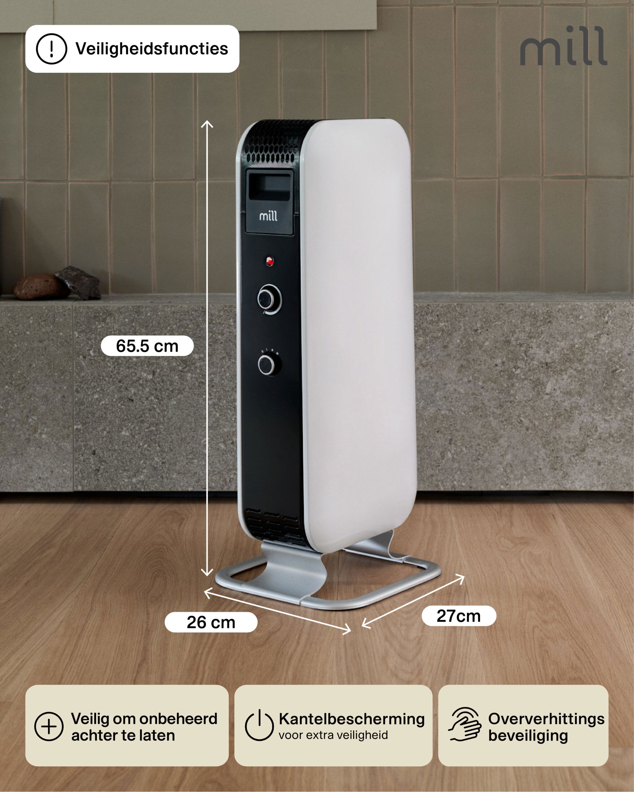 Mill AB-H1000MEC is een geweldige allround verwarming. Dit model houdt ruimtes tot 16m2 verwarmd en heeft een vermogen van 1000W. Deze oliegevulde radiator is eenvoudig te bedienen met een mechanische thermostaat waarmee je de temperatuur hoger en lager kunt zetten (niet in exacte graden). Uiteraard met de mooie looks van Mill.Als u op zoek bent naar iets dat uw interieur er fantastisch kan laten uitzien en u tegelijkertijd het aangename warme gevoel in de winter kunt geven; dan heb je de nieuwe generatie olie gevulde radiator van Mill nodig! Mill Oil is een innovatieve, met olie gevulde radiator met de modernste technologie. Het heeft een elegant ontwerp dat elke plaats er verbazingwekkend kan laten uitzien. Mill Oil stimuleert de warmteverdeling in hoge mate en biedt een comfortabele warme omgeving. Bovendien droogt het de lucht niet.