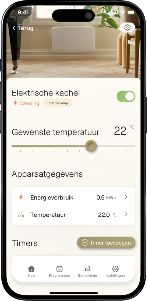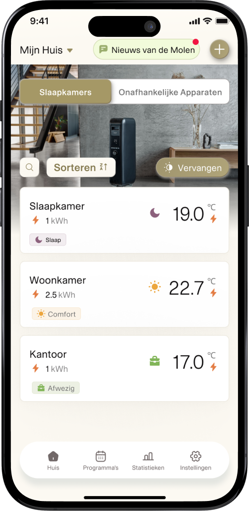 - Regel de temperatuur en het stroomverbruik op afstand met de Mill-app